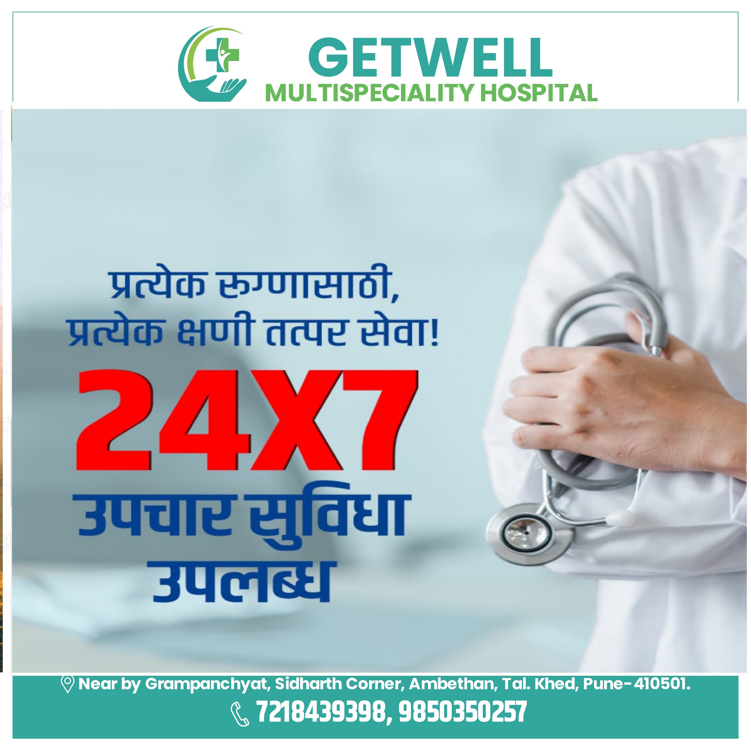 GetWell Multispeciality Hospital in Ambethan Near By Grampanchayat Ambethan gaon, Chakan - Ambethan Rd, Tal khed, Dist Pune, Maharashtra 410501 +918042754227